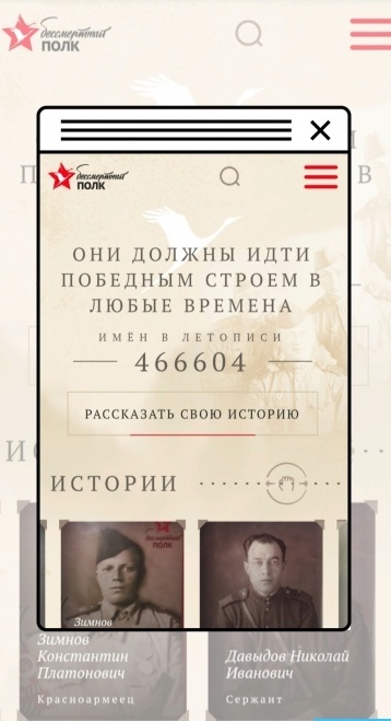 https://pamyat-naroda.ru/history/ - раздел проекта «Память народа» размещены истории и воспоминания людей, чьи судьбы затронула война 1941–1945 года; в котором можно рассказать о войне близких вам людей, сохранив их имена для истории России.