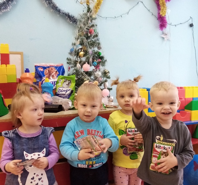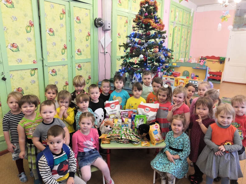 Добрые детские сердечки не остались равнодушными к проблеме бездомных животных. В детском саду, в рамках нравственного воспитания подрастающего поколения, с целью формирования у дошкольников стремления к совершению добрых поступков в декабре была организована акция «Новый год с хвостиком».