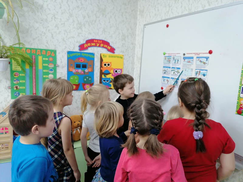 С детьми была проведена беседа «Осторожно – тонкий лед». Ребята активно отвечали на вопросы воспитателя и повторили правила безопасного поведения на водоемах в зимнее время.