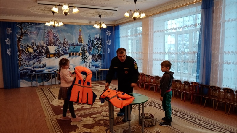 Для того, чтобы дети не попали в беду или сами могли помочь при происшествии на водоёмах, сотрудники МЧС России напоминают, как действовать в экстремальных ситуациях. Подобные занятия необходимы, чтобы донести до подрастающего поколения правила поведения на воде, ведь водоём зимой может легко превратиться из места игр и шалостей в место трагедии. Инспектор ГИМС Гасан Гасанбекович Алиев. Сотрудники провел профилактическое занятие в детском саду. Детям рассказали о том, что период ледостава является одним из наиболее опасных. Дело в том, что именно в это время возникает наибольший риск происшествий, особенно когда водоёмы покрываются первым неокрепшим льдом. Трагедия может произойти во время рыбалки, а также из-за детской шалости. Вместе с сотрудником ребята разобрали происшествия, которые могут случиться на воде, и что нужно делать, чтобы подобных ситуаций избежать. Инспектор призвал ребят неукоснительно соблюдать правила безопасности на воде. В конце занятия были розданы яркие памятки и продемонстрированы средства спасения в виде спасательного жилета, спасательного круга, спасательного конца Александрова.
