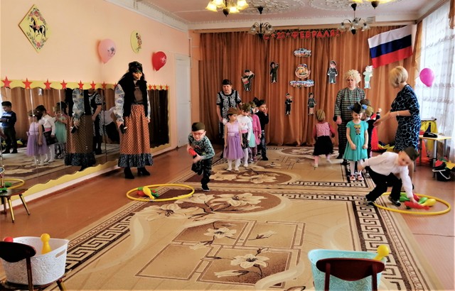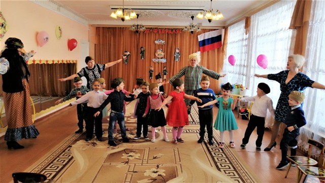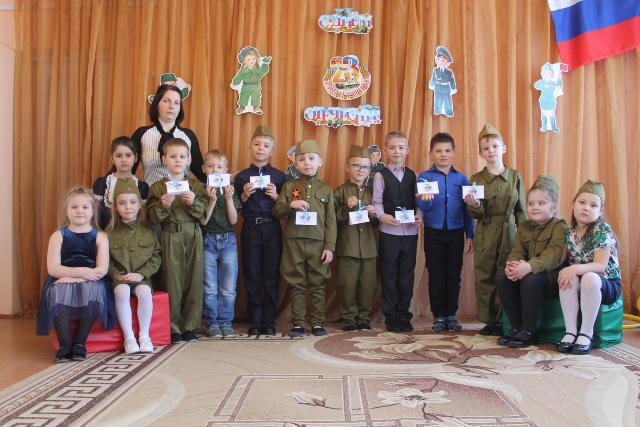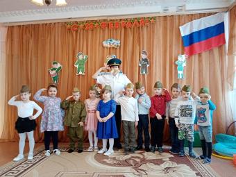 В детском саду в преддверии праздника прошла тематическая неделя, посвященная Дню защитника Отечества. В течение этого времени во всех возрастных группах проводились различные мероприятия с детьми: беседы о Российской Армии, о военных профессиях и родах войск, рассматривание иллюстраций и картин на военную тематику, чтение художественной литературы (рассказы, стихи, повести), отгадывание загадок о военной технике, знакомство с военными профессиями, разучивание песен, стихов, изготовление подарков для пап и дедушек, спортивные мероприятия.