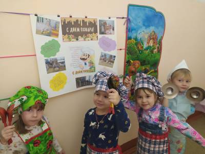 В преддверии Дня повара воспитанники детского сада приняли участие в дидактических играх «Полезные и вредные продукты», «Что сначала, что потом», «Фрукты и овощи», где закрепили знания о вредных и полезных продуктах, о том, как правильно заваривать чай, о последовательности приготовления каши, а также какие овощи нужны для супа, а какие – для компота и другие.