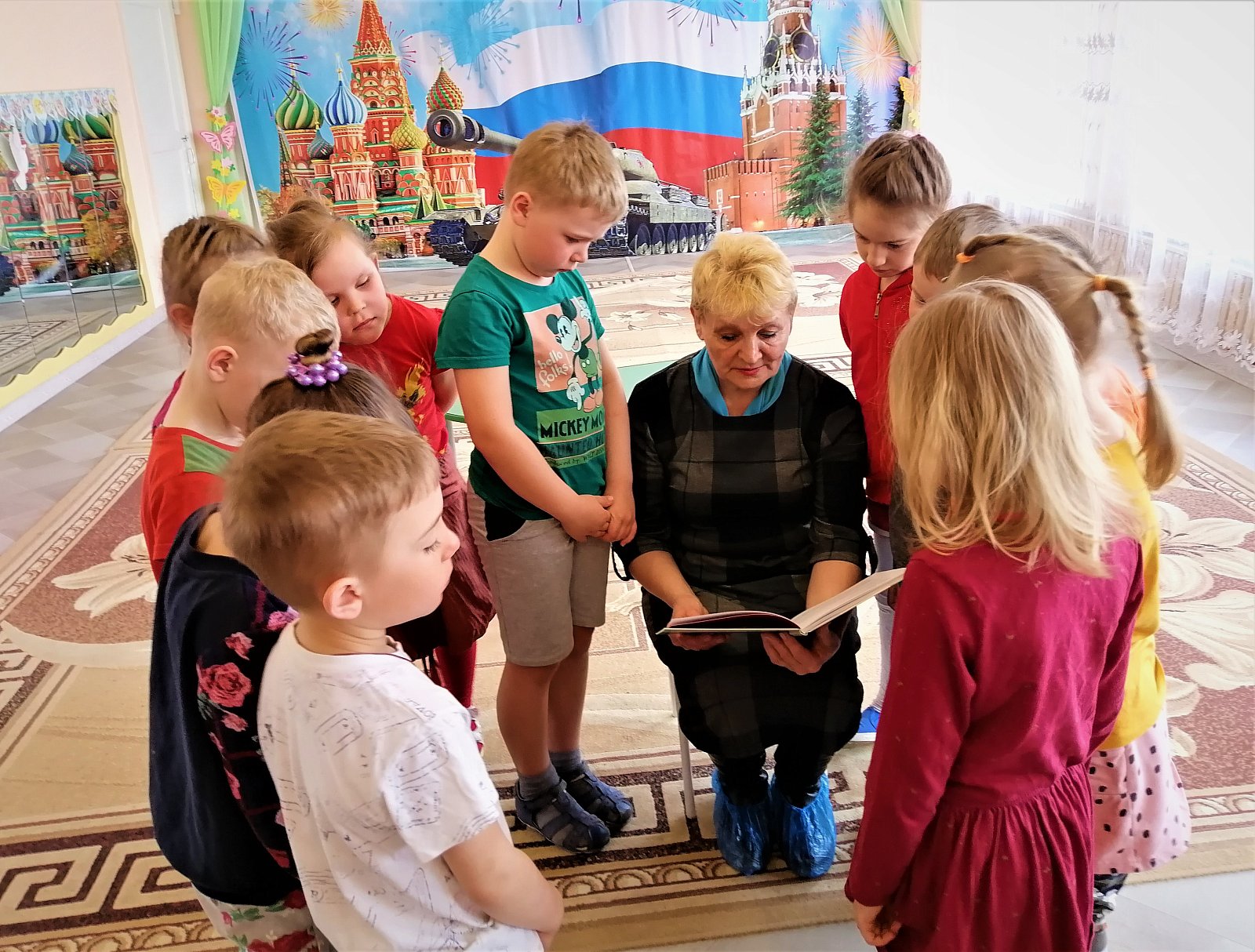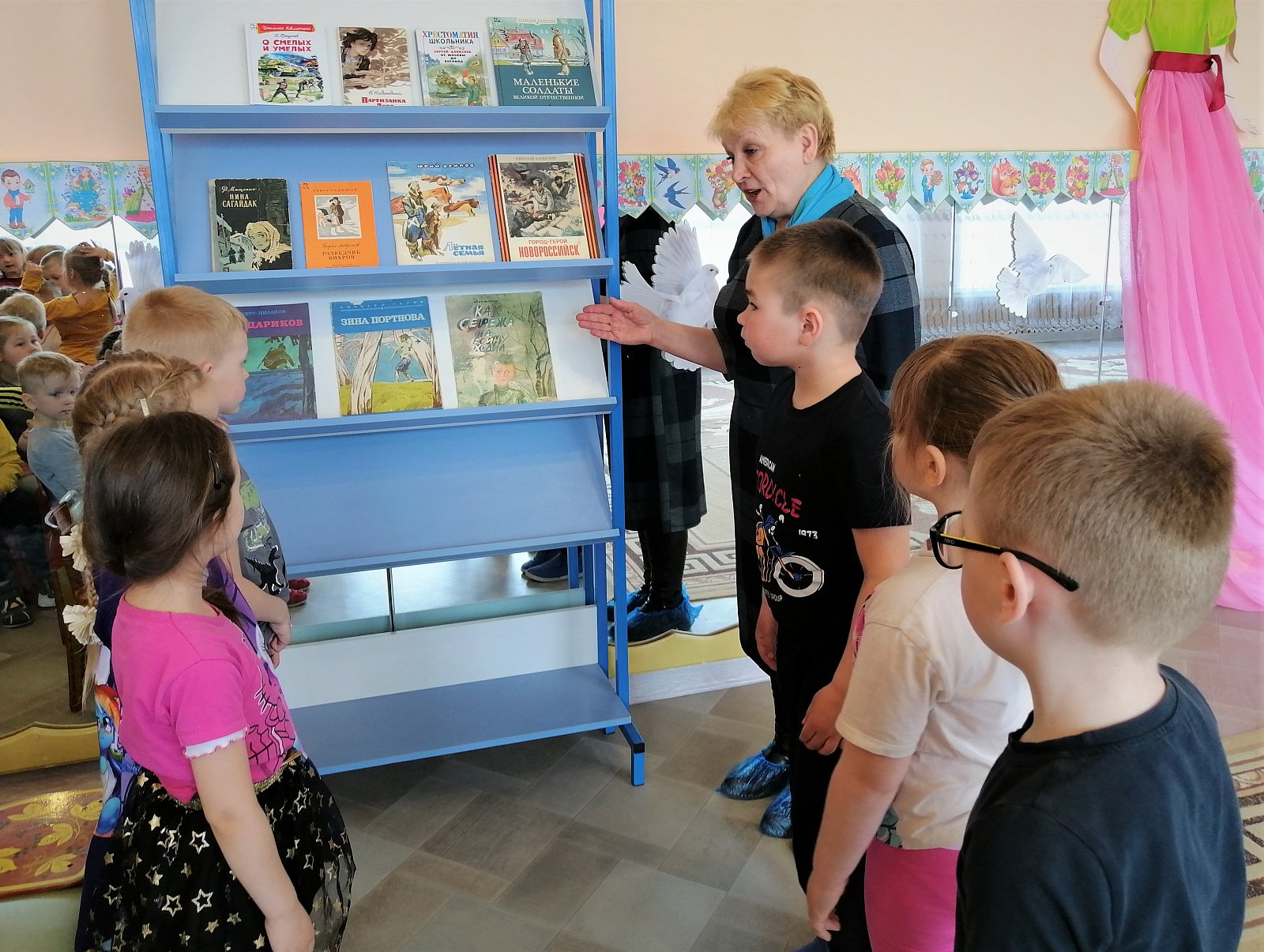 5 мая в детском саду состоялось мероприятие "Читаем детям о войне", подготовленное Лакинской детской библиотекой. Антонина Ивановна рассказала детям о героях Великой Отечественной войны, прочитала несколько рассказов Сергея Алексеева о войне. Ребята внимательно слушали и отвечали на вопросы по тексту. Большой интерес вызвала выставка книг о войне.