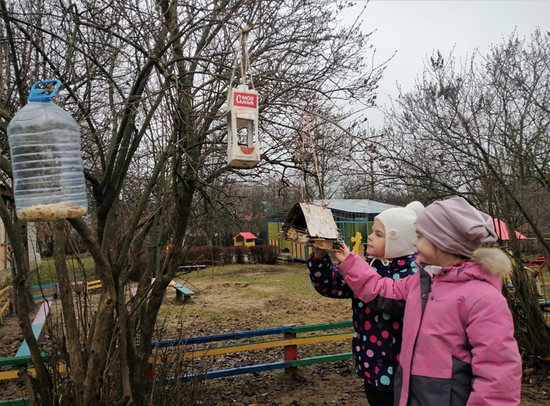 Педагог подготовительной группы «Смешарики» Светлана Николаевна к Синичкину дню организовала мастерскую по изготовлению кормушек из подручного материала. Дети с большим желанием и ответственностью подошли к выполнению работы, смастерили замечательные кормушки, которые помогут пережить птицам суровую зиму. На прогулке заведующая Лакинской детской библиотекой провела акцию «Покормите птиц зимой», в которой играла с детьми в различные игры по теме, загадывала загадки и беседовала о бережном отношении к птицам. Людмила Викторовна рассказала детям об особенностях подкормки пернатых зимой. В завершение мероприятия дети разложили кормовую смесь по кормушкам и с помощью взрослых развесили их.
