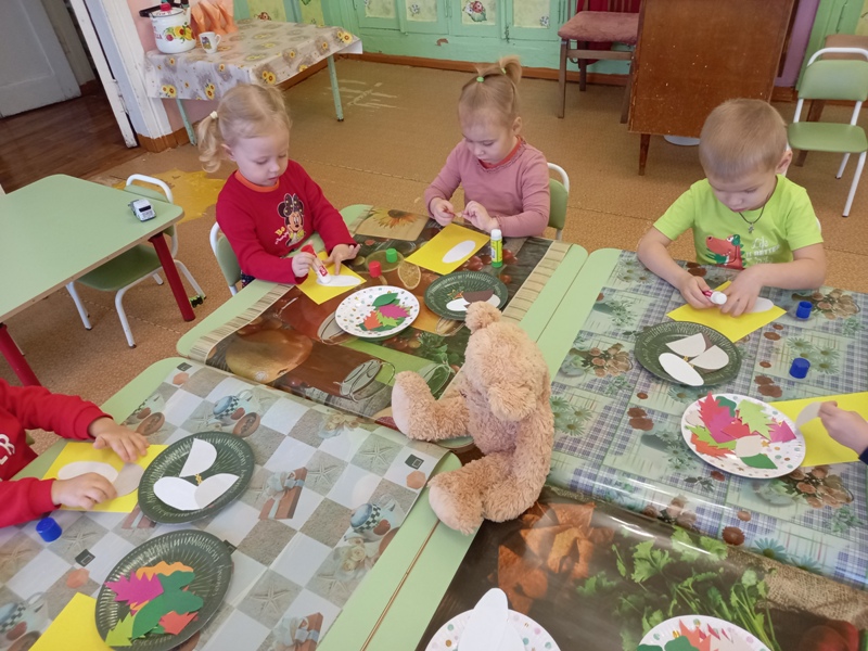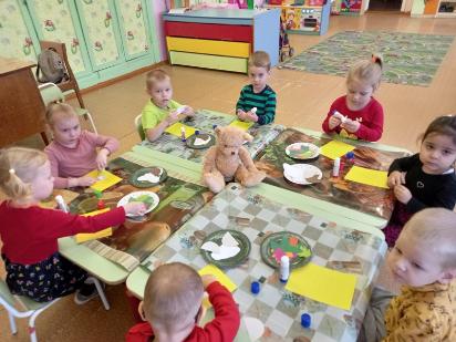 Аппликация - один из любимых видов изобразительной деятельности детей второй младшей группе "Воробушки". Занятия с детьми по аппликации проходят в форме игры, для обыгрывания определенного сюжета используются стихотворные формы, сказки, подвижные и пальчиковые игры, персонажи (игрушки и куклы из различных театров, изображения того или иного персонажа, который обыгрывается). Дети успешно овладевают техническими навыками аппликационных операций: выкладывают, составляют из отдельных частей целое, упражняются в равномерном размещении элементов по площади листа; успешно овладевают сенсорными эталонами; приобретают первоначальные навыки поисковой деятельности; усваивают простейшие навыки совместной работы; активно общаются друг с другом и воспитателем.