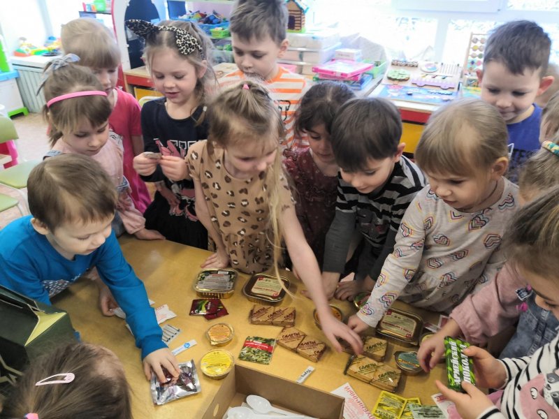 В старшей группе «Божья коровка» ребята познакомились с ИРП – сухим пайком солдата российской армии. Сухой паек – набор продуктов, предназначенных для питания военных, когда нет возможности готовить горячую пищу.