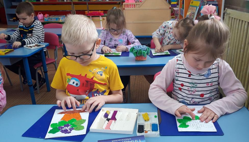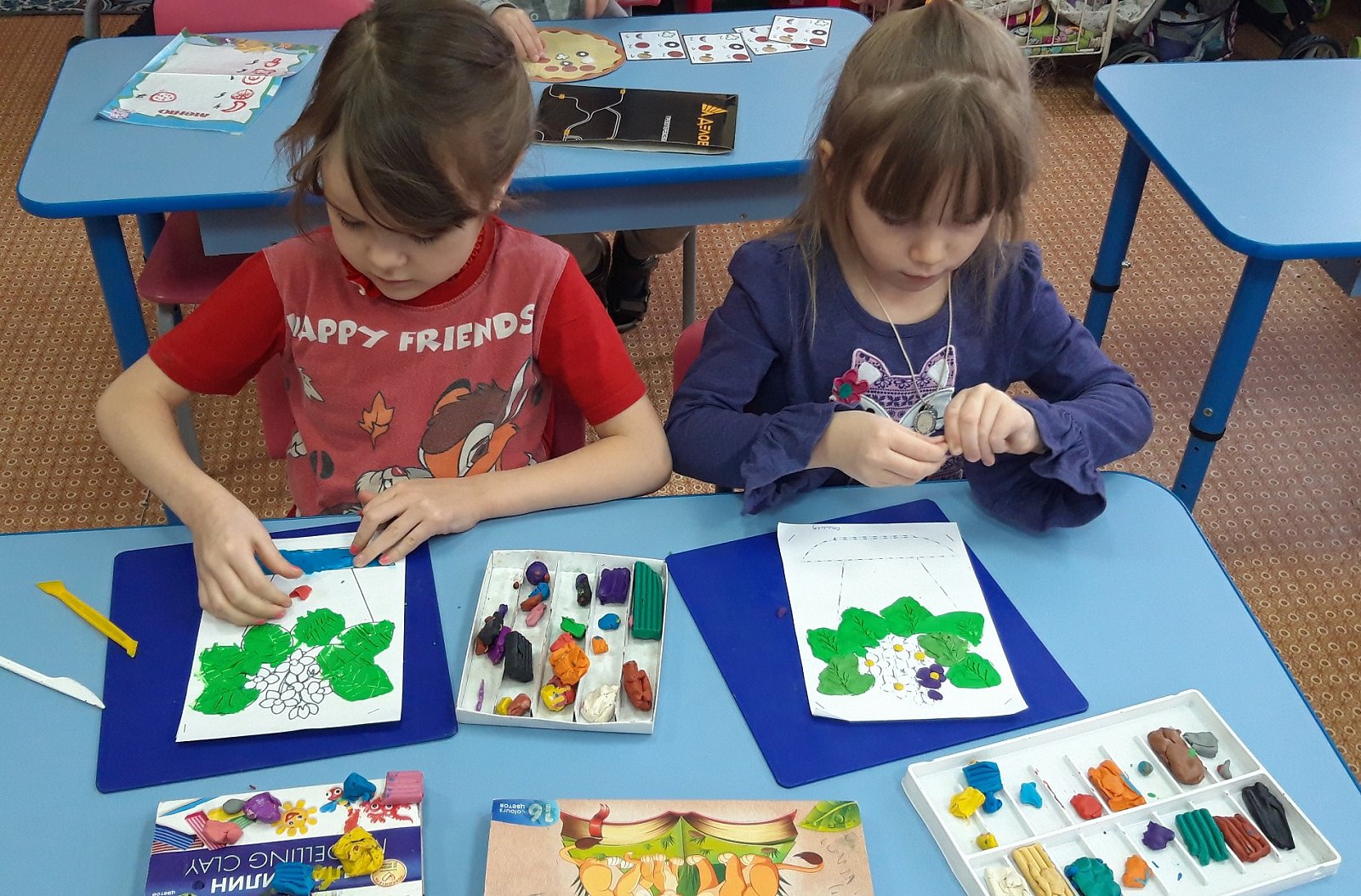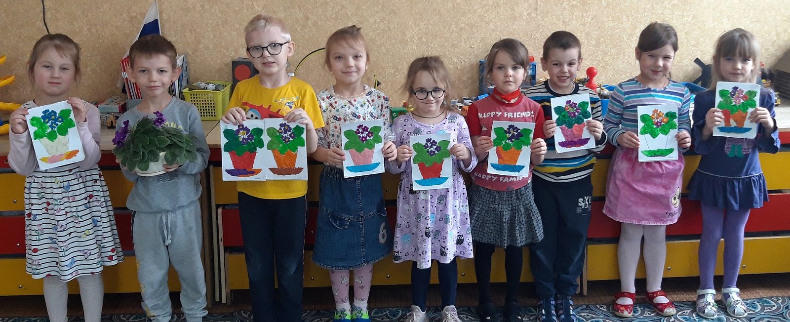 На занятии по изобразительной деятельности ребята рисовали в нетрадиционной технике – пластилинография картину «Цветущая фиалка». Хочется отметить, что процесс лепки очень завораживает, заставляет с головой погрузиться в творчество и эффективен для развития мелкой моторики рук, ведь степень сформированности мелкой моторики помогает в развитии речи ребёнка. Занятия пластилинографией вносят новизну в деятельность детей, поэтому вызывают интерес. Ребята постарались передать красоту цветов в своих композициях. Замечательные работы разместили на выставке.
