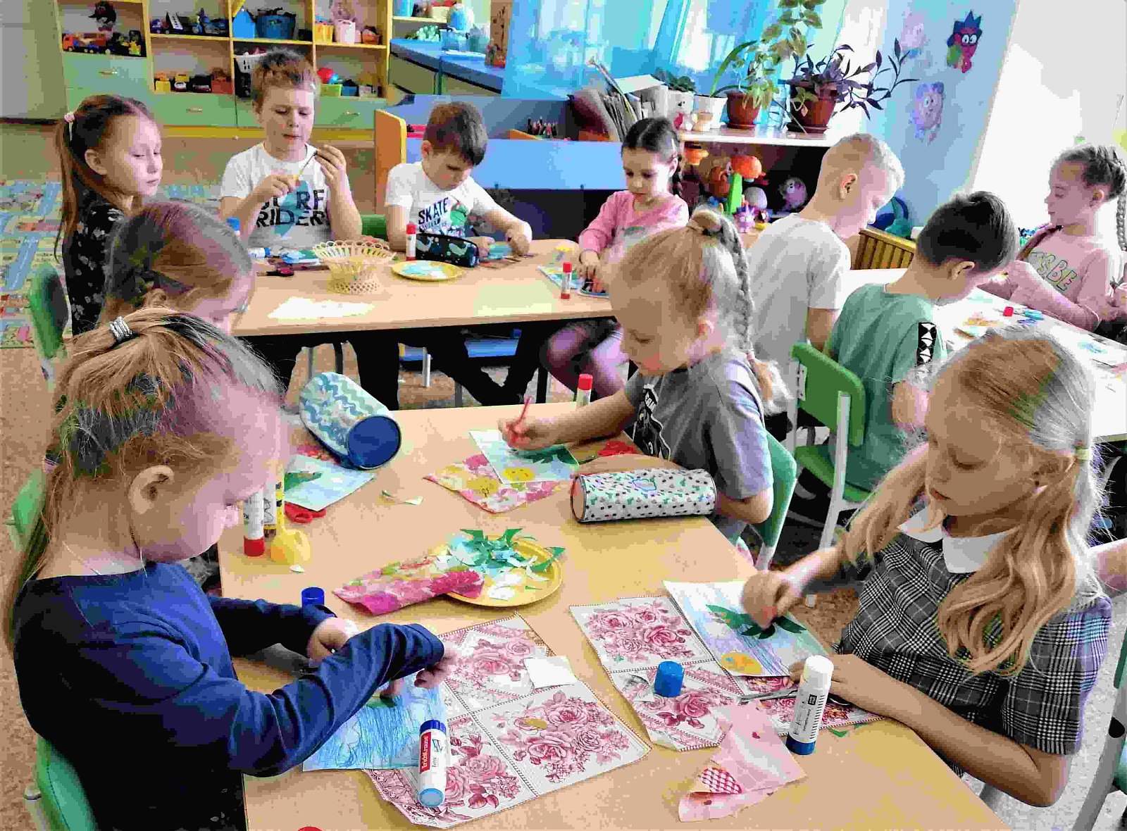 Оказалось, что наиболее любимым произведением детей стала сказка «Краденое солнце». Поэтому именно этого героя они решили выбрать для темы аппликации с элементами рисования. Дети очень постарались и творчески передали в своей работе первый эпизод сказки.