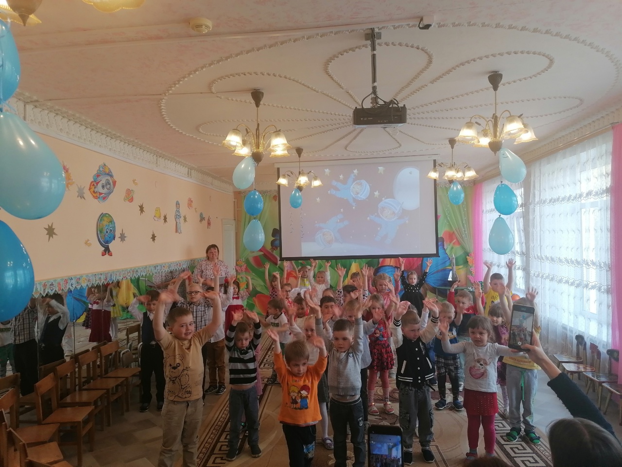 Ребята помладше исполнили музыкальную постановку «Юные космонавты», а ребята постарше порадовали веселым танцем «Полет».