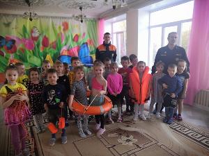 Была организована встреча детей с сотрудникоми ГИМС МЧС Собинского района. В целях предотвращения несчастных случаев на весеннем льду государственный инспектор по маломерным судам инспекторного участка №2 г.Собинка ФКУ «Центр ГИМС МЧС России» Алиев Гасан Гасанбекович провел беседу «Будь осторожен на воде». Он напомнил ребятам о правилах поведения на воде в весенний период. Затем привел примеры реальных историй, когда люди из-за собственной беспечности проваливались под лед. Во время беседы ребята повторили основные правила безопасного поведения на водных объектах, что нужно делать, если они стали свидетелями несчастного случая на льду. Гасан Гасанбекович провел для ребят мастер-класс - дети пробовали оказать первую помощь пострадавшим на воде, узнали правильное название спасательных средств. Дети вспомнили, как позвонить в "101" или "112".