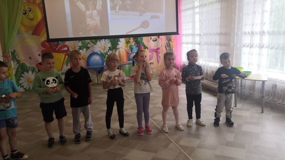 Дети пpиняли участие в мини-конкуpсах и наpодных музыкальных игpах. Выступили в ансамбле ложкаpей, исполнили танец ложек.