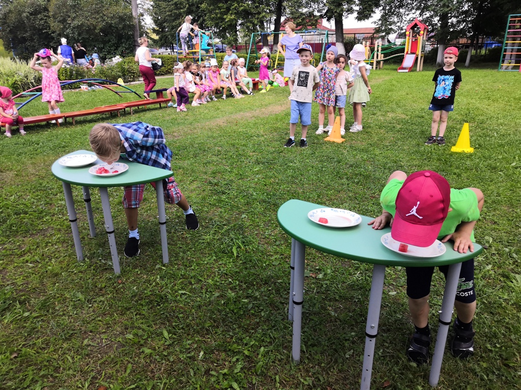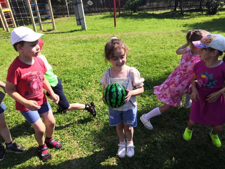И, разумеется в этот день, не обошлось без веселых соревнований. Все с удовольствием участвовали в арбузных эстафетах, где не только соревновались в ловкости и силе, но и проявили чувство дружбы и умение действовать в коллективе.