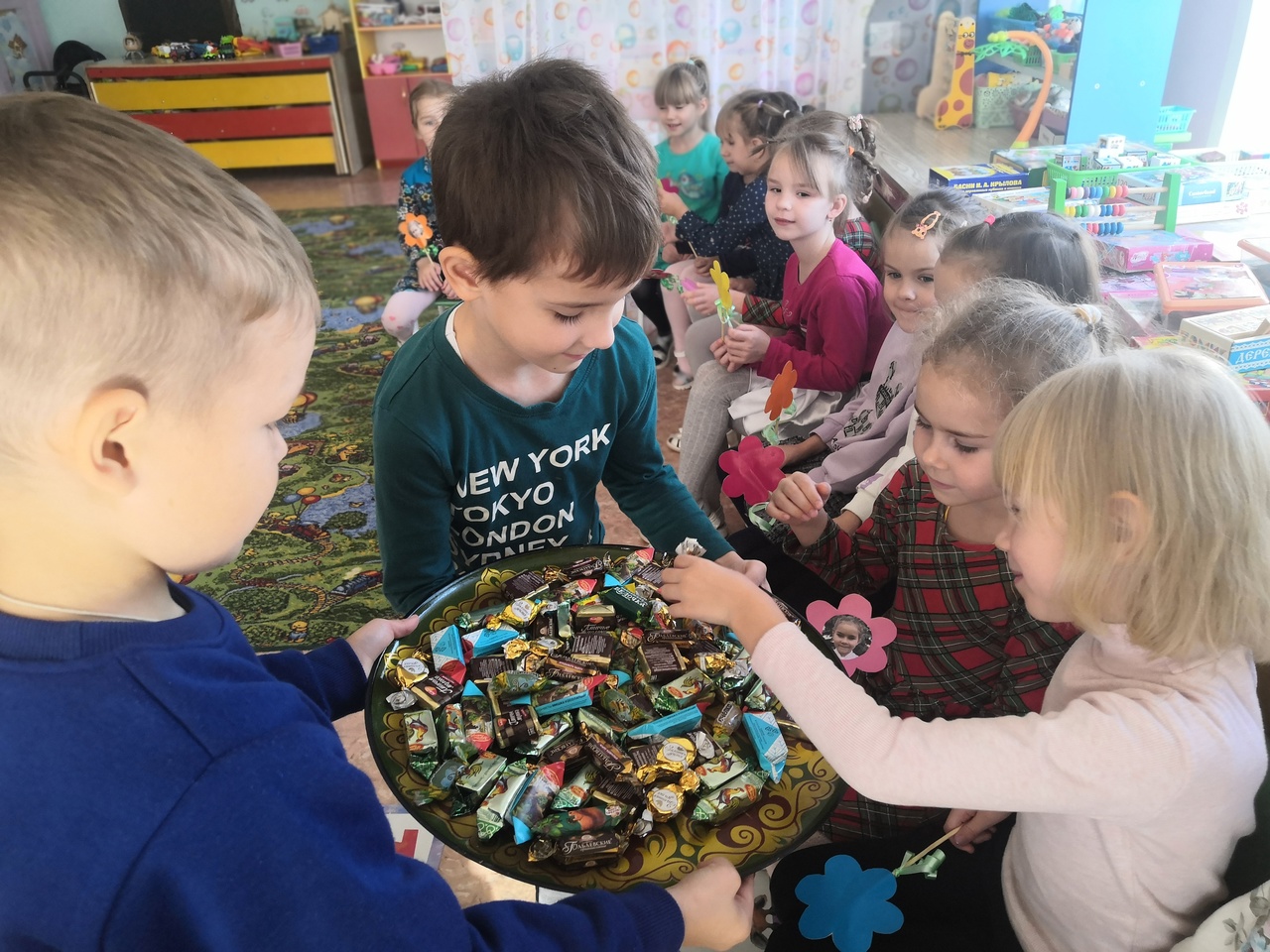 Кавалеры группы для милых барышней в честь праздника, подготовили замечательные подарки.