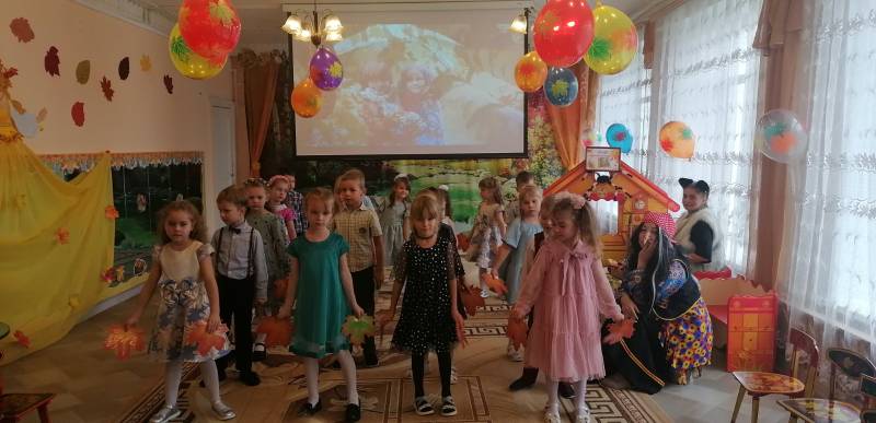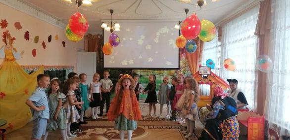 Звенят детские голоса в музыкальном зале детского сада и это значит, что в детский сад пришел традиционный праздник осени. Красавица Осень заглянула и к большим и к маленьким, а дети встречали её как дорогую гостью — с песнями, танцами, сказками, играми, шутками да прибаутками! Выступления воспитанников получились эмоциональными и задорными, они с удовольствием пели песни на осеннюю тематику, танцевали, читали стихи, играли с героями.