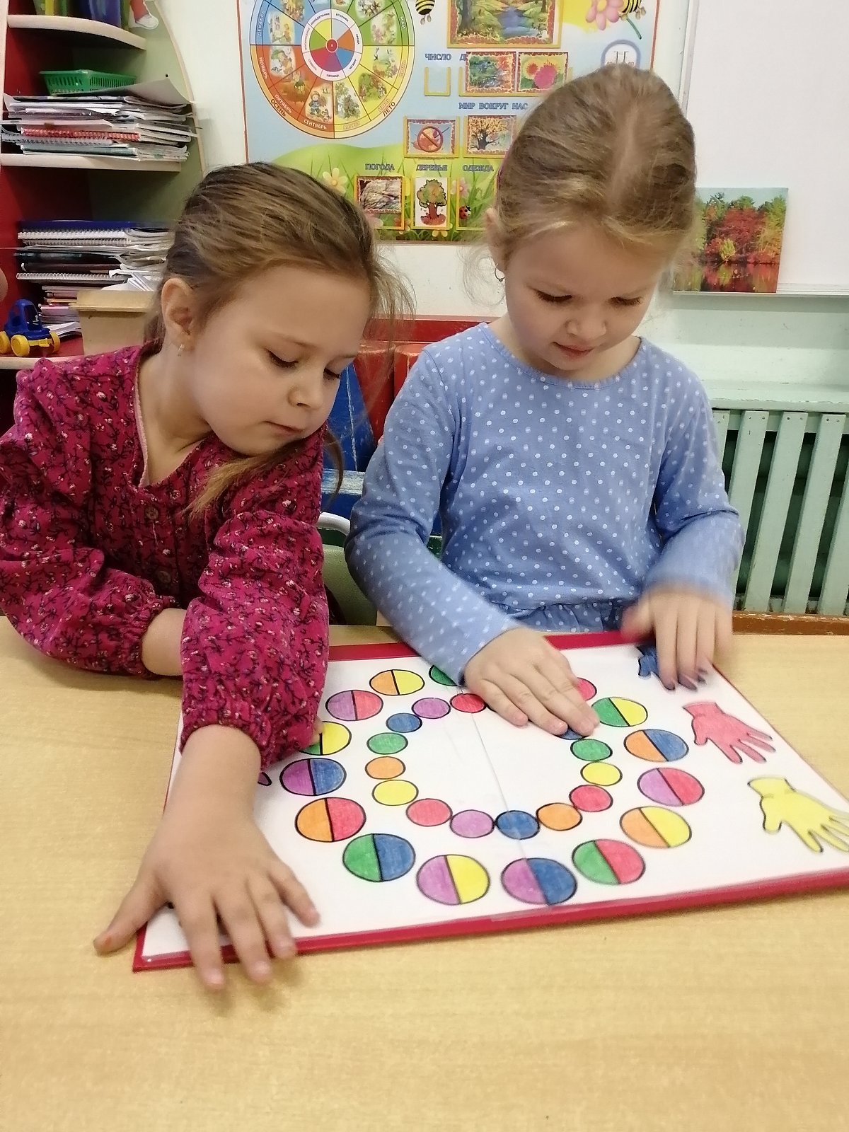 Интересная развивающая нейроигра «Разноцветные круги» изготовлена стараниям родителей старшей группы «Пчёлки». В игре нужно соотнести цвет круга и нажать на ладошку того же цвета. Игра полюбилась детям нашей группы. С её помощью - тренируем пространственные представления, развиваем внимание, память и гибкость мышления, улучшаем межполушарное взаимодействие.