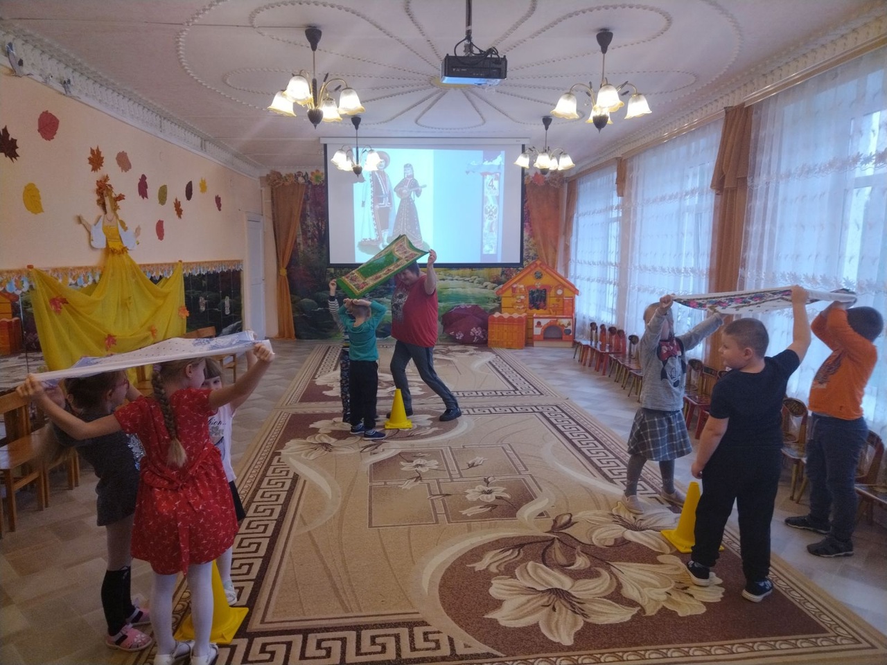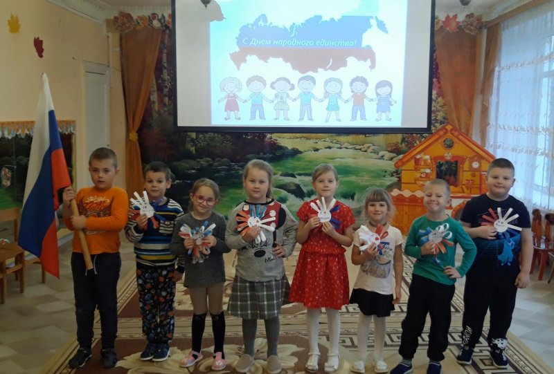 В преддверии праздника в нашей группе «Колокольчики» прошло музыкальное развлечение «Хоровод дружбы». Детям было рассказано об истории праздника и истории России, о воинской славе и доблести, о гордости за нашу Родину и ее героев, о милосердии и доброте. Участники совершили исторический экскурс по окрестностям нашей необъятной Родины. «Побывали в гостях» у различных народов, проживающих в наших краях. Узнали их традиции и обычаи. Играли в национальные игры: русская народная игра «Ленточка», башкирские игры «Юрта», «Уголки», татарские игры «Спутанные кони» и «Продаём горшки» и повторяли национальные танцы.