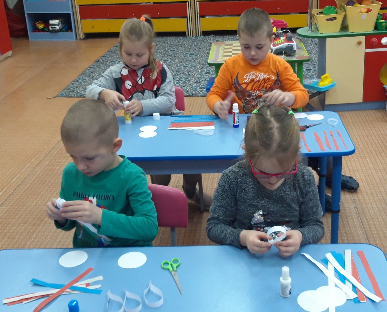 А в группе ребята смастерили красивое и оригинальное «солнышко», такое русское, праздничное, символизирующее флаг России.