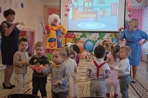 Интересно и весело в 1 – ой младшей группе «Воробушки» прошёл праздник «Бусы для мамочки». К ребятам в гости пришёл клоун Клёпа, который хотел подарить бусы в подарок мамам. Но по дороге он растерял бусинки. Дети обещали клоуну помочь найти все бусинки и отправились в путешествие. По пути они встретили Сороку, Петушка, Ёжика, Кошку и Матрёшку. В подарок каждому персонажу малыши пели и плясали. Герои подарили ребятам по бусинке.