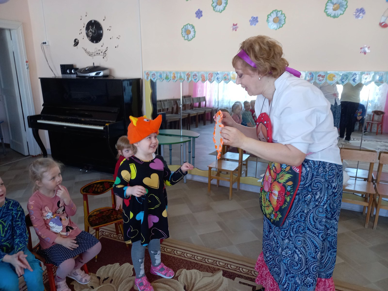Под руководством музыкального руководителя Бахиревой Елены Викторовны, прошло традиционное гулянье «Масленица» с песнями и плясками, с конкурсами, народными играми и забавами. В гости к средней группе «Смешарики» на масленицу пришла и сама румяная Масленица с пышными блинами, а вместе с ней пришла красивая и нарядная Весна. Детские глаза выражали восторг, а на лице сияла улыбка от ярких эмоций праздника!