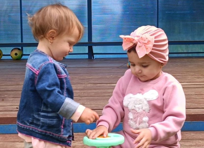 Малыши знакомятся с группой, где формируются у них чувства защищенности и доверия к окружающему миру через активное вовлечение в игры со взрослыми и сверстниками.