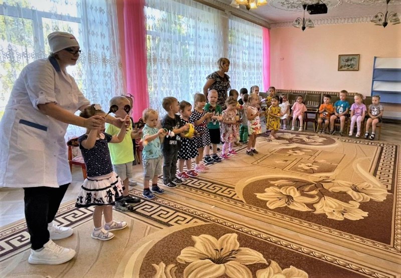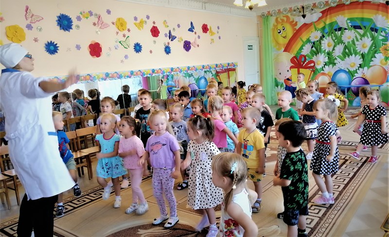 Интересно и весело прошёл День знаний во 2 – ой младшей группе «Воробушки» и средней группе «Божья коровка». В гости к ребятам пришёл Доктор, который решил проверить, здоровы ли дети, готовы ли к новым знаниям и победам, а заодно и помочь дошколятам соблюдать здоровый образ жизни. Ребята средней группы спели, а малыши сыграли в оркестре, и все вместе они станцевали. Дети показали Доктору, что знают много о режиме дня и соблюдают его, чтобы быть здоровыми и правильно развиваться. А ещё ребята убедили Доктора, что хотят ещё многое узнать и активно стремятся в будущем пойти в школу. Доктор был очень рад, что желание получать новые знания у наших детей на высоте!