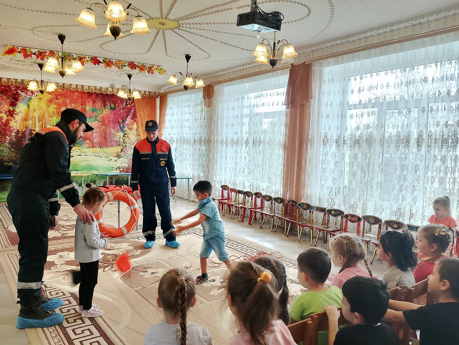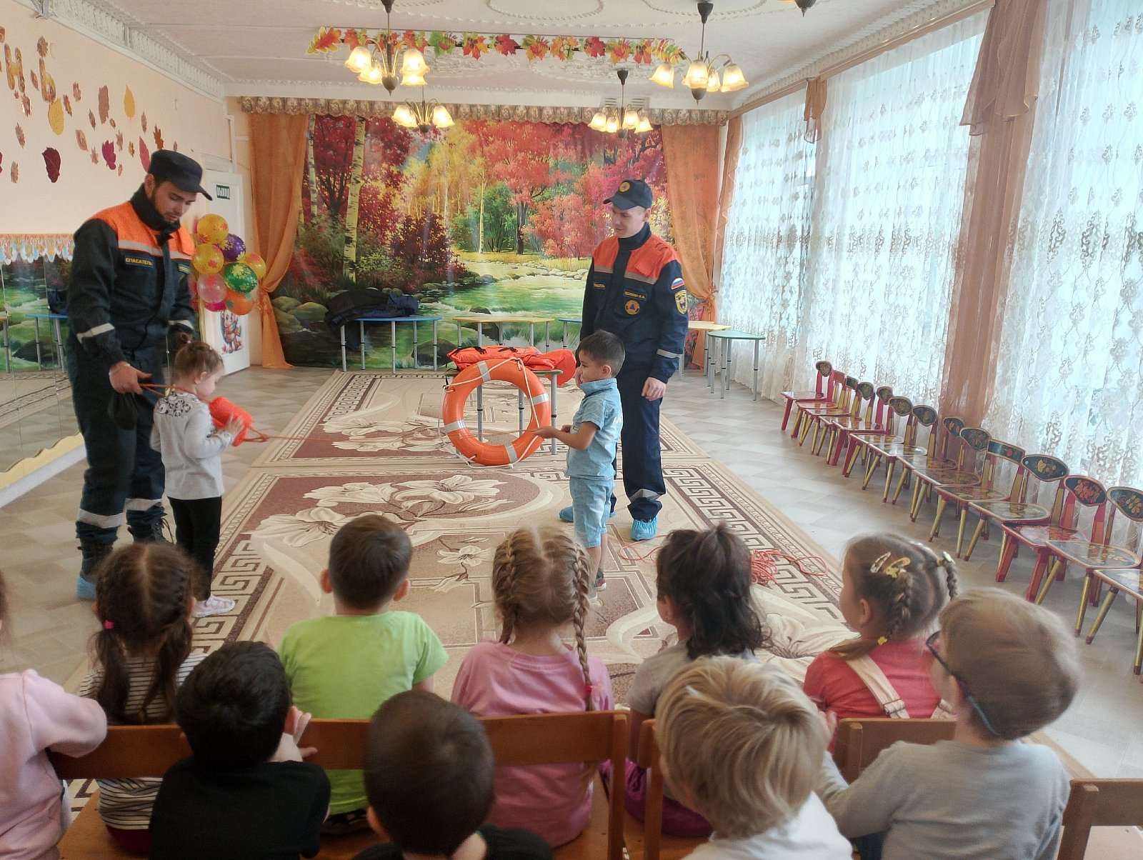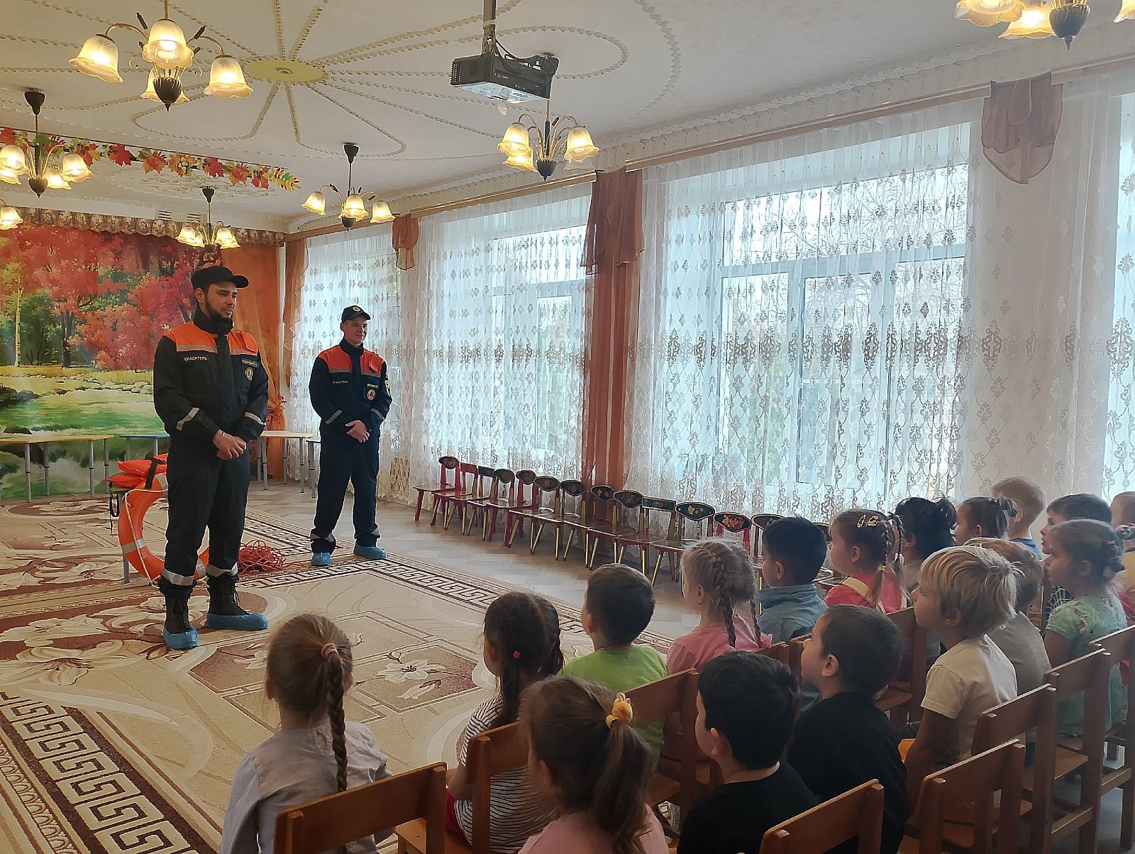 Сегодня в гости к ребятам пришли сотрудники спасательной станции города Собинки Николай Витальевич Новолодский и Илья Алексеевич Осокин, которые провели профилактическую беседу с ребятами на тему: "Правила поведение на водоёмах в осенний период".