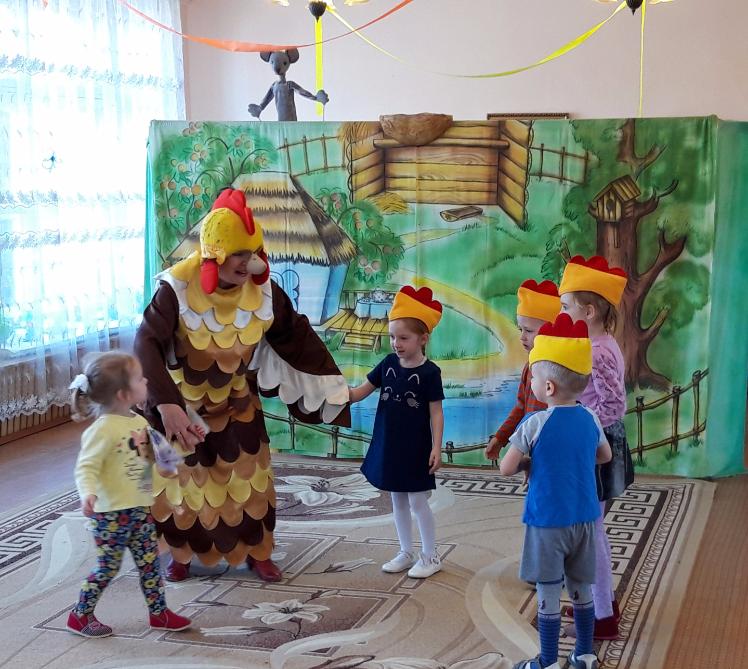 В гостях у ребят детского сада театр "Детские забавы" с представлением "Золотая курочка".