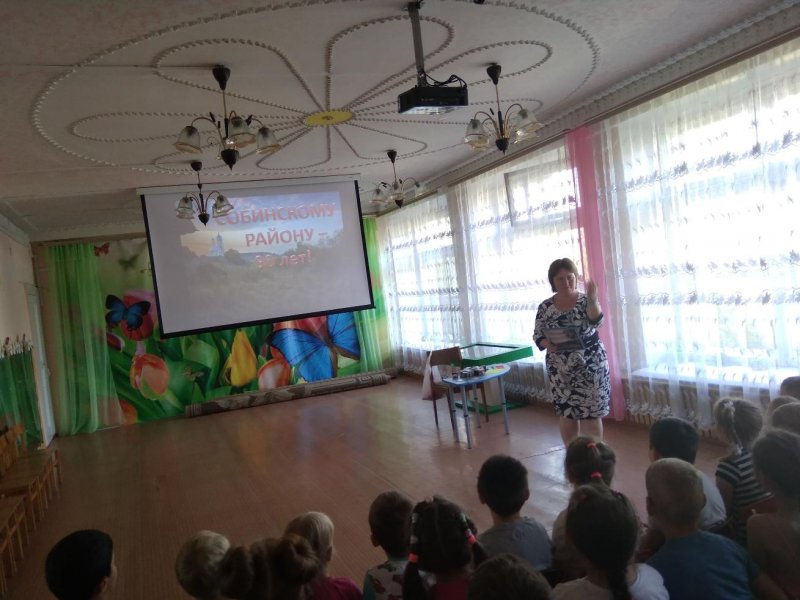 В преддверии празднования 90-летнего юбилея Собинского района ребят старших групп посетила библиотекарь Лакинской городской библиотеки Екатерина Юрьевна. Она представила детям интересный рассказ с презентацией об истории Собинского района, памятных местах, природе и выдающихся уроженцах нашего края, поиграла с ребятами в подвижные игры Собинского района.