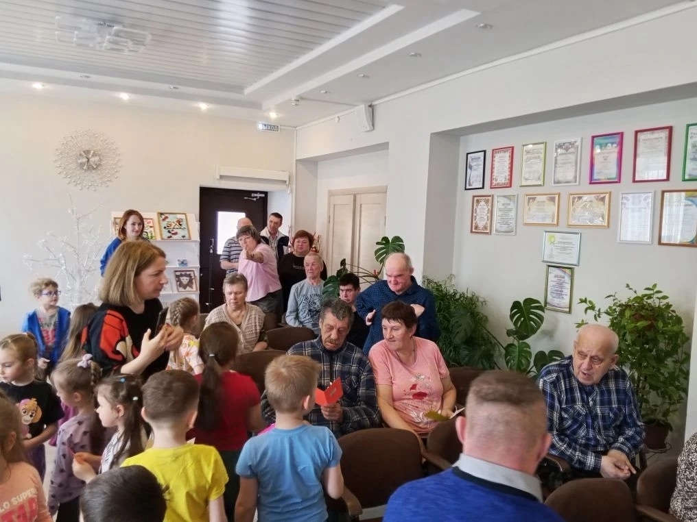 В рамках "Весенней недели добра" воспитанники старшей группы "Божья коровка" и группа компенсирующей направленности "Колокольчики" посетили ГБУСОВО "Собинский дом социального обслуживания". Укрепление связей между поколениями, воспитание в детях доброго, уважительного отношения к взрослым - именно с этой целью педагоги отправились с детьми в социальное учреждение. Программу открыла Трофимова Наталья Михайловна - психолог, она провела для ребят викторины "Дари добро", "Минуты радости", "Подари улыбку другу". Затем ребята старшей группы выступили со стихами и песнями. Жители интерната с удовольствием слушали наши выступления. Яркие и зажигательные номера оставили неизгладимые впечатления в душах зрителей. А песня "Милый край" тронула всех до глубины души. В заключение ребята подарили всем проживающим открытки сделанные своими руками, а в ответ детей угостили конфетами и печеньем.