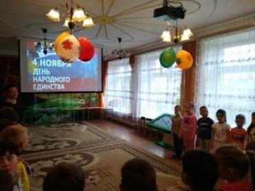 4 ноября вся Россия будет отмечать День народного единства. В преддверии этого праздника патриотизма, взаимопомощи и единения всех российских народов в детском саду прошли тематические мероприятия. Проведены беседы на тему «Россия - Родина моя», «День народного единства»; рассматривание иллюстраций, альбомов «Символы России», организовано посещение музея детского сада; чтение художественной литературы, продуктивная деятельность. В группах старшего дошкольного возраста под руководством педагогов ребята выполнили к празднику коллективные работы, символизирующие единение и сплоченность многонационального народа России ради достойного будущего. Дошкольники через презентацию «Русские богатыри» познакомились с богатырями земли русской, с их доспехами и орудиями сражения, узнали об их подвигах.